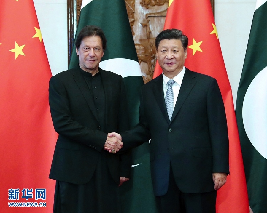 10月9日,國(guó)家主席習(xí)近平在北京釣魚臺(tái)國(guó)賓館會(huì)見(jiàn)巴基斯坦總理伊姆蘭·汗。