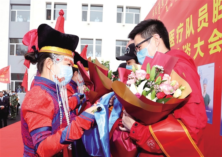 我區(qū)部分盟市援鄂醫(yī)療隊(duì)員結(jié)束休整休養(yǎng)分別返回駐地 4月16日,錫林浩特機(jī)場(chǎng)工作人員為回家的錫盟第二批馳援......