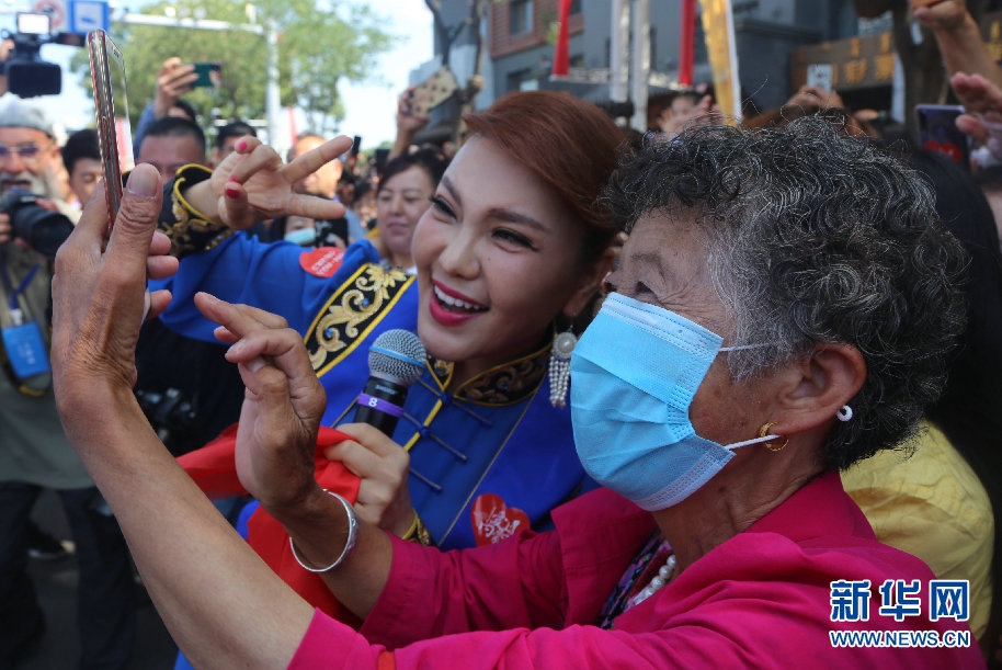 開幕式上歌手烏蘭圖雅與觀眾互動(dòng)。新華網(wǎng) 李倩攝