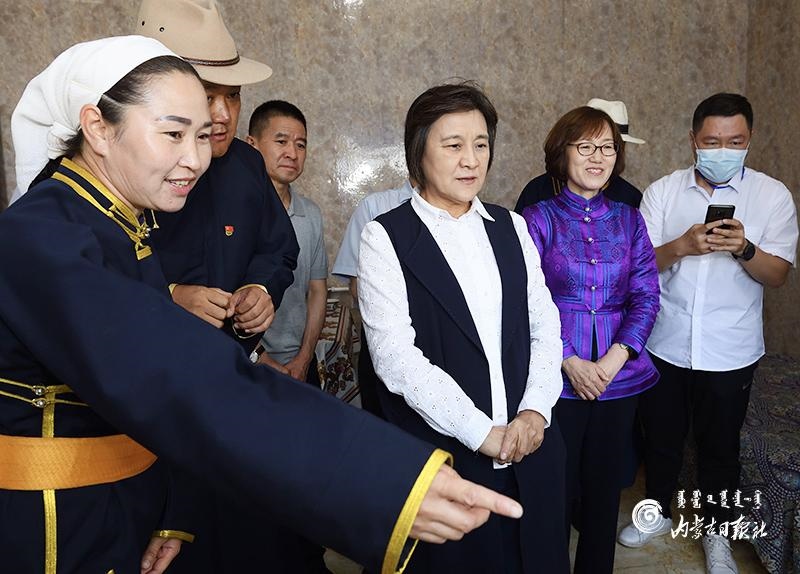 自治區(qū)黨委副書記、自治區(qū)主席布小林來到呼倫貝爾市新巴爾虎右旗芒來嘎查牧戶滿達家,了解智慧牧場等設備使用情況。內蒙古日報記者 金泉 攝