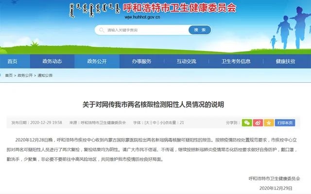 呼和浩特市兩人核酸檢測呈陽性?官方回應(yīng)來了!