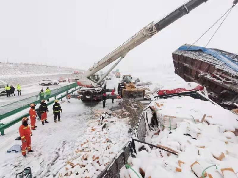 記者當(dāng)晚從內(nèi)蒙古自治區(qū)應(yīng)急管理廳以及烏海市有關(guān)部門了解到,事發(fā)時(shí),1輛重型半掛牽引車因雨雪天氣道路結(jié)冰發(fā)生側(cè)滑,致使后方行駛的另一輛重型半掛車采取措施不及發(fā)生碰撞,繼而引發(fā)多車連環(huán)相撞,致3死2傷。事故發(fā)生后,烏海市公安、消防、交警等部門立即趕赴現(xiàn)場(chǎng)展開救援工作。由于部分大貨車車頭后部天然氣儲(chǔ)罐破損發(fā)生泄漏,給現(xiàn)場(chǎng)處置救援帶來一定難度。消防部門通過破拆救援,成功將傷者抬至安全地帶,移交給現(xiàn)場(chǎng)120醫(yī)護(hù)人員緊急送往就近醫(yī)院治療。截至當(dāng)日24時(shí)許,事故現(xiàn)場(chǎng)清理完畢。