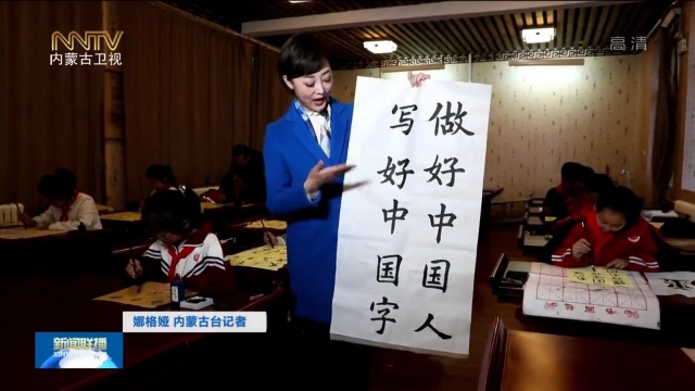 娜格婭 內(nèi)蒙古臺(tái)記者:做好中國(guó)人,寫(xiě)好中國(guó)字,你能想到我手中的這些字,是一個(gè)四年級(jí)小朋友寫(xiě)的嗎?我現(xiàn)在是在呼和浩特鋼鐵路第二小學(xué)的興趣課上,學(xué)生們正在學(xué)習(xí)寫(xiě)毛筆字,一筆一劃傳承書(shū)法文化,一撇一捺書(shū)寫(xiě)著愛(ài)國(guó)情懷。像這樣的興趣課每周有一次。