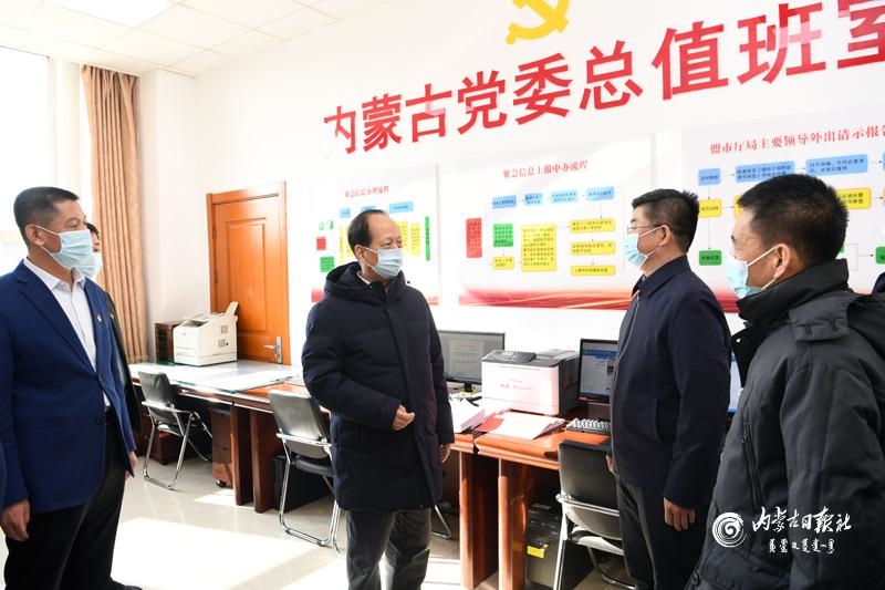 1月31日,自治區(qū)黨委書(shū)記、人大常委會(huì)主任石泰峰,來(lái)到自治區(qū)黨委總值班室檢查指導(dǎo)全區(qū)政務(wù)值班情況。內(nèi)蒙古日?qǐng)?bào)社融媒體記者袁永紅攝