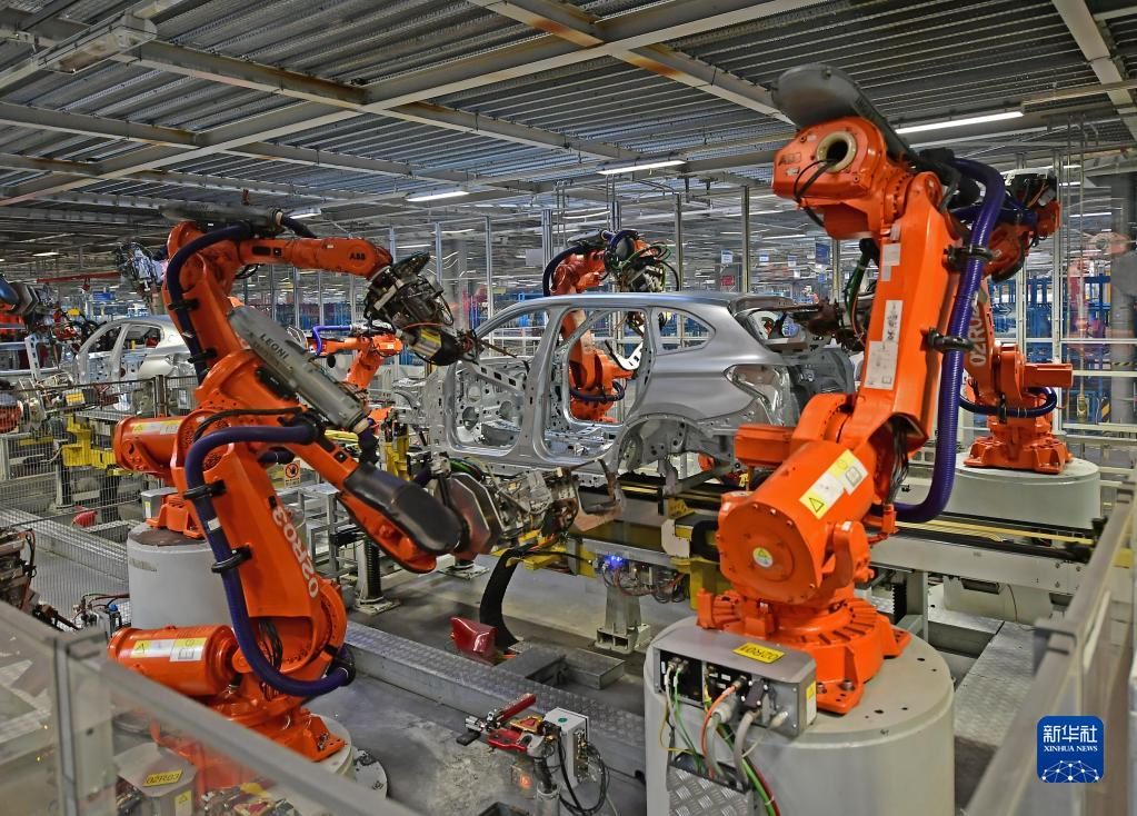 2022年2月16日,在華晨寶馬沈陽(yáng)鐵西工廠車(chē)身車(chē)間,機(jī)器臂在焊接車(chē)身。新華社記者 楊青 攝