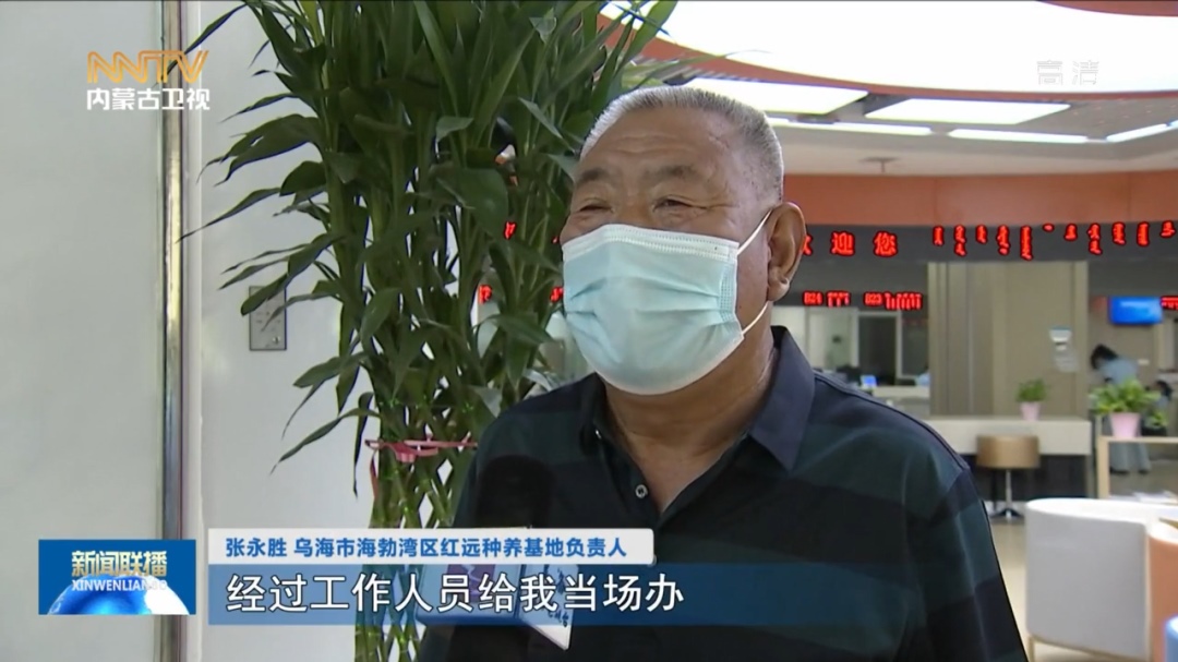 張永勝 烏海市海勃灣區(qū)紅遠(yuǎn)種養(yǎng)基地負(fù)責(zé)人 我原來想的辦這個東西挺費(fèi)勁,經(jīng)過工作人員給我當(dāng)場辦,比我想象的還要快,我非常高興。