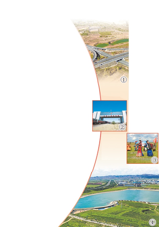 圖②:“二連號(hào)”中蒙寬軌集裝箱專列駛出內(nèi)蒙古自治區(qū)二連浩特國(guó)門(mén),開(kāi)往蒙古國(guó)烏蘭巴托。