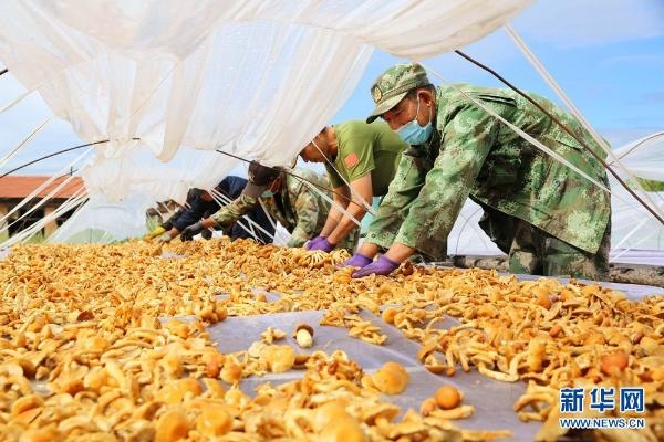 內(nèi)蒙古森工集團(tuán)阿里河森工公司齊奇嶺林場(chǎng)種植戶(hù)將采摘后的滑子菇進(jìn)行晾曬。新華網(wǎng) 石毅 攝