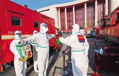 10月20日,在內蒙古革命歷史博物館方艙醫(yī)院,呼和浩特市消防救援支隊消防員正在做個人消殺。本輪疫情發(fā)生以來,該支隊累計執(zhí)行消毒消殺任務300余次,完成室內消殺近15萬平方米、消防安全線上檢查指導近500(家)次,為疫情防控貢獻消防力量。(內蒙古日報社融媒體記者記者 懷特烏勒斯 通訊員 隆雪 攝)