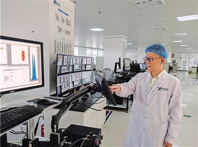 丁瑞正在對精子分離機進行參數調試。(圖片由受訪者提供)