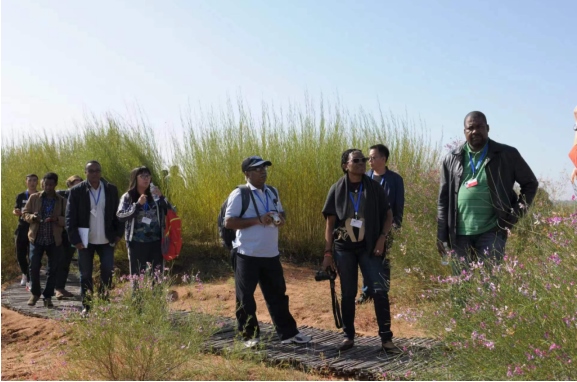 2017年9月,《聯(lián)合國防治荒漠化公約》第十三次締約方大會與會代表觀摩庫布其生態(tài)建設(shè)現(xiàn)場。