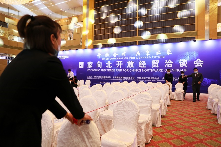 北疆新聞呼和浩特9月5日消息(記者 張楊)“目前,會(huì)場(chǎng)布置、搭建以及其他各項(xiàng)工作已全部就緒,預(yù)祝大會(huì)成功召開(kāi)?!眹?guó)家向北開(kāi)放經(jīng)貿(mào)洽談會(huì)會(huì)務(wù)總導(dǎo)演希樂(lè)木格5日上午向記者介紹,“第四屆中蒙博覽會(huì)暨國(guó)家向北開(kāi)放經(jīng)貿(mào)洽談會(huì)”,將于6日下午在香格里拉大酒店召開(kāi)。作為本次會(huì)議的服務(wù)機(jī)構(gòu),內(nèi)蒙古出版集團(tuán)漠尼公司將提供全方位的服務(wù),保障會(huì)議圓滿成功。