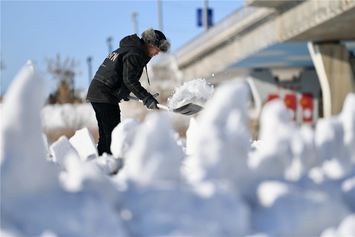 雕刻前先清理30厘米厚的積雪。