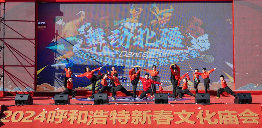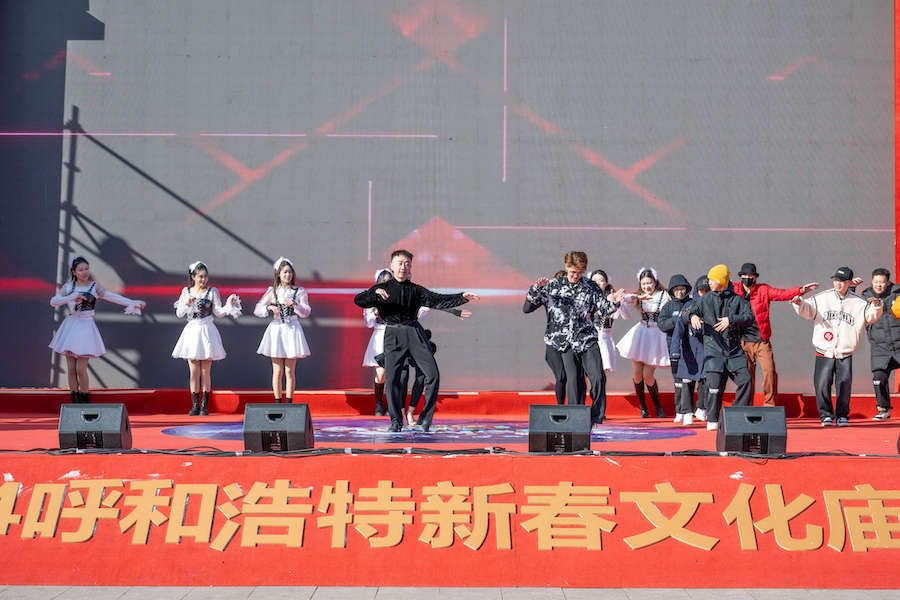 北疆新聞呼和浩特2月22日電(記者 楊凈毓 林則志)動感的音樂,時尚炫酷的舞姿,100余名街舞愛好者齊聚內蒙古呼和浩特大召廣場,為市民、游客上演了一場精彩絕倫的街舞盛宴。