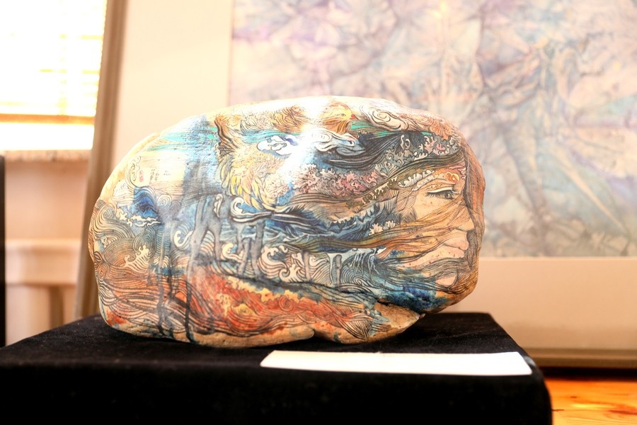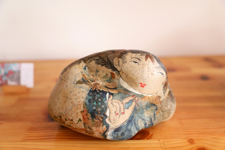 自2016年起,魯婷開始用黃河石畫的形式,講述母親河的故事。2018年,魯婷在西行客棧建立了自己的工作室,向社會(huì)各界免費(fèi)開放,用黃河石彩繪的方式,為北疆文化注入新的思想和內(nèi)涵。