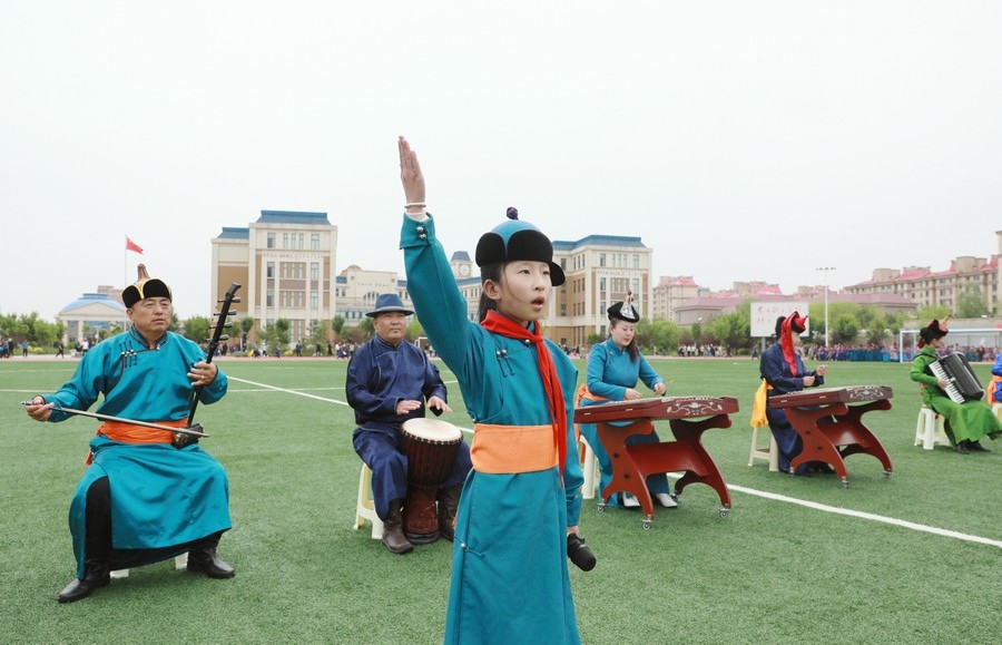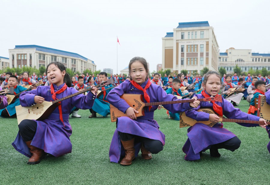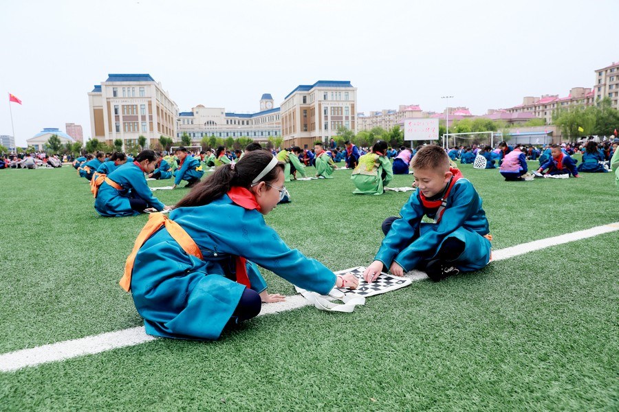 “今天參加4個(gè)‘千人文化’特色課程感到非常高興和開(kāi)心。這4個(gè)課程讓我們的文化素養(yǎng)得到質(zhì)的提升,愉悅了身心?!蔽迥昙?jí)125班的哈斯寶勒爾剛剛參加完特色課程展示。哈斯寶勒爾表示,這4個(gè)課程,比如玩象棋的話(huà),可以提升自己的思維邏輯,讓自己的思路更加清晰,能夠提升學(xué)習(xí)成績(jī);練習(xí)筷子舞,可以讓我們的心情變得更加愉悅,通過(guò)練習(xí)跳舞,讓我們身體的柔韌性更強(qiáng);唱江格爾,能鍛煉我們的唱歌能力,還能讓我們把非物質(zhì)文化遺產(chǎn)傳承下去;踢足球可以鍛煉我們的體能。