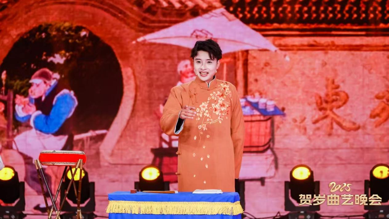 在這場(chǎng)晚會(huì)上,“曲藝+”的創(chuàng)新融合成為最大亮點(diǎn)。歌曲《曲山藝海震江湖》大膽融合評(píng)彈、rap歌曲,讓諸葛亮、穆桂英等經(jīng)典人物以全新形象登場(chǎng),京劇扮相與現(xiàn)代元素碰撞出奇妙火花;西河大鼓與上海說(shuō)唱共同演繹的《雙數(shù)塔》,以及融合多種曲藝形式的《美食大世界》等節(jié)目,不斷拓展傳統(tǒng)曲藝的邊界,以年輕態(tài)審美賦予非遺傳承新的生命力。此外,小品《老有所依》、評(píng)書(shū)和朗誦《戍邊的幸福》等節(jié)目,在傳遞人間大愛(ài)、展現(xiàn)民族團(tuán)結(jié)的同時(shí),也讓觀(guān)眾感受到文藝作品的溫度。