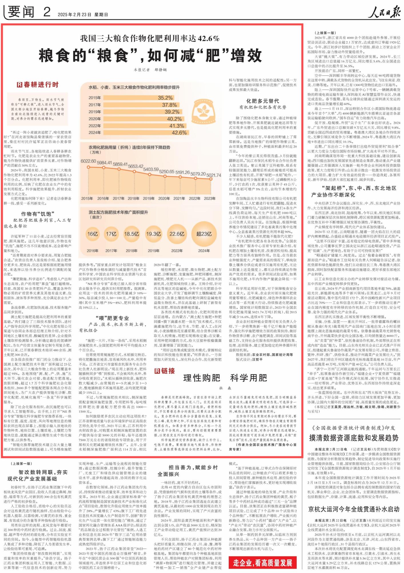 2025年2月23日,《人民日報》第2版刊發(fā)題為《糧食的“糧食”,如何減“肥”增效》的文章,其中報道了內蒙古“測土配方施肥+種肥同播+膜下滴灌水肥一體化”技術模式。