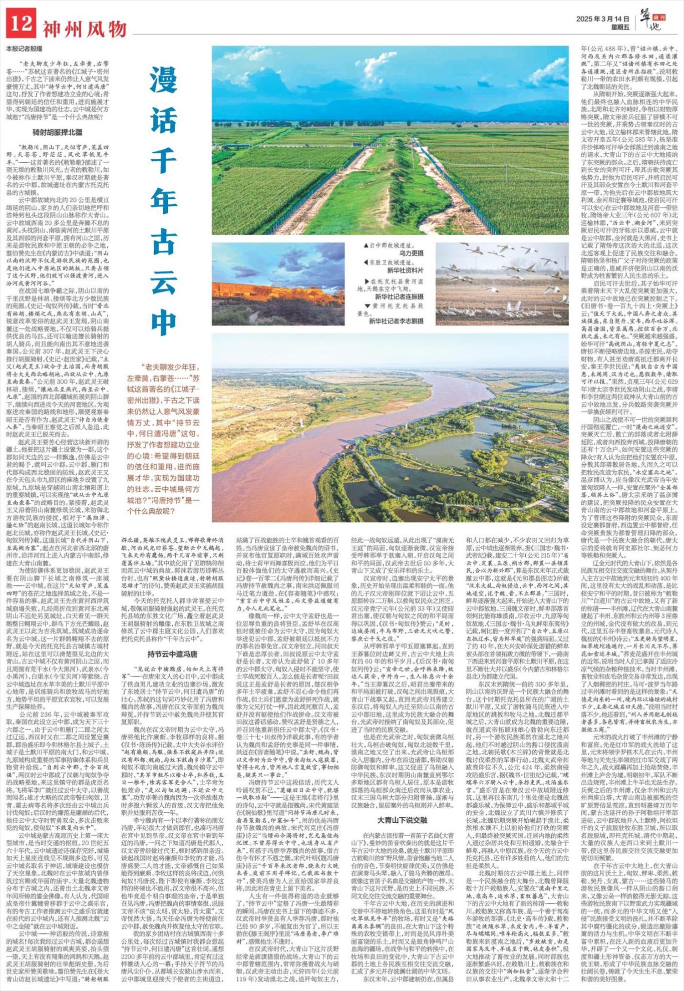 新華社北京3月14日電 3月14日,《新華每日電訊》發(fā)表題為《漫話千年古云中》的報道。
