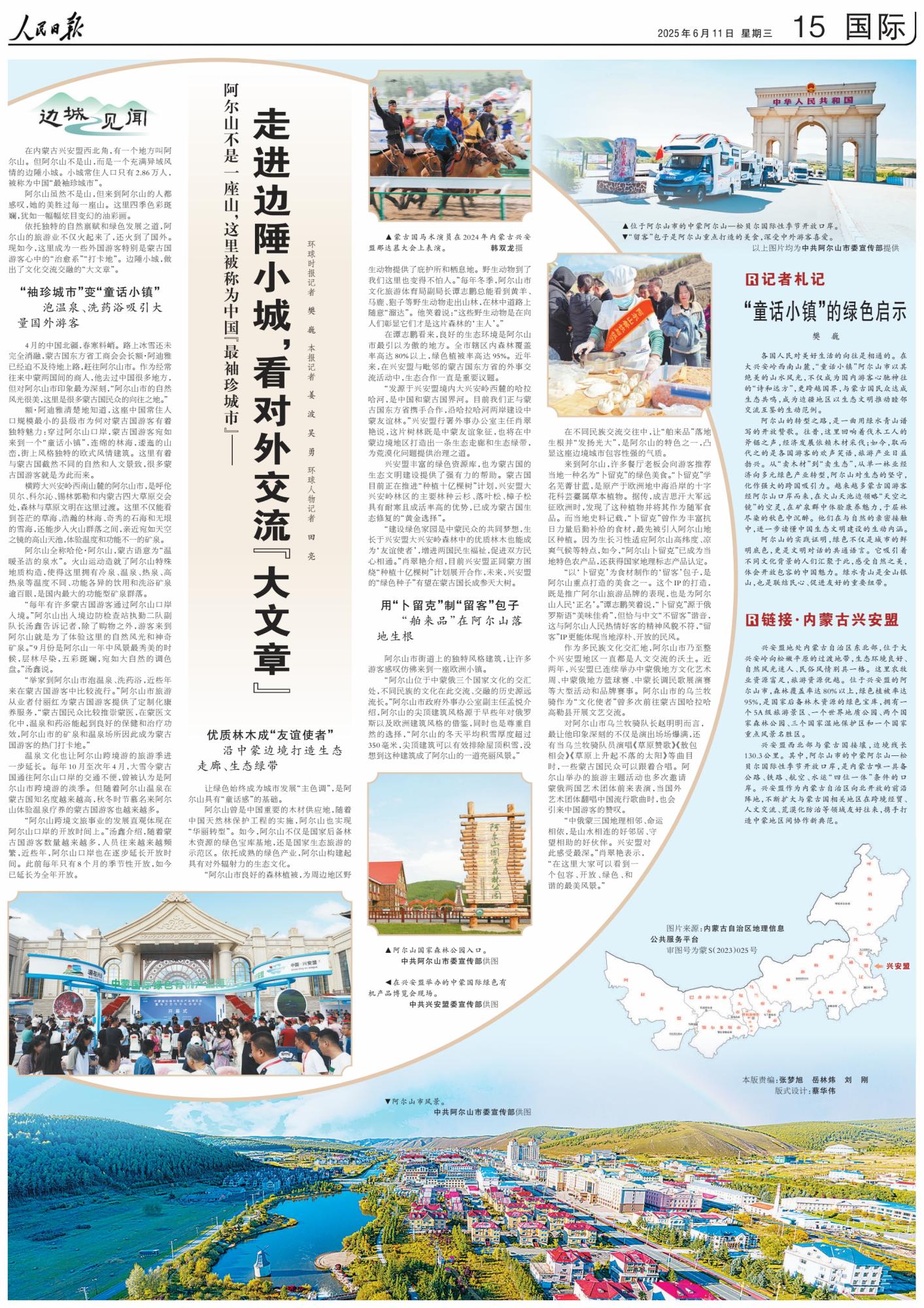 2025年6月11日,《人民日報》第15版刊發(fā)整版文章《阿爾山不是一座山,這里被稱為中國“最袖珍城市”——走進邊陲小城,看對外交流“大文章”》,報道了依托獨特的自然稟賦和綠色發(fā)展之道,阿爾山的旅游業(yè)火起來了?,F(xiàn)如今,這里成為一些外國游客特別是蒙古國游客心中的“治愈系”“打卡地”。邊陲小城,做出了文化交流交融的“大文章”。