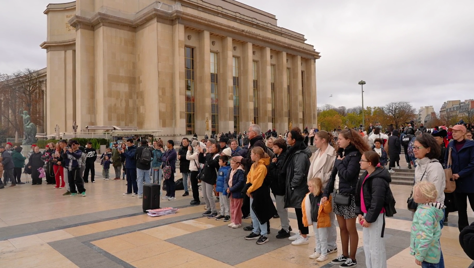 在法國巴黎市的夏約宮廣場、埃菲爾鐵塔、香榭麗舍大街、巴黎圣母院、凱旋門、國際大學城,比利時布魯塞爾市大廣場、藝術(shù)山等地,阿拉善的烏蘭牧騎演員開啟了一場場融合蒙古族華服走秀與快閃歌舞表演,“阿拉善在哪里?”“這服裝太酷了!”“怎么有萬馬奔騰的感覺!”“想去看一看!”“這沙漠也太壯觀了!”快閃路演吸引了法國、比利時以及來自世界各地的游客駐足觀看,喝彩不斷,沉醉其中。