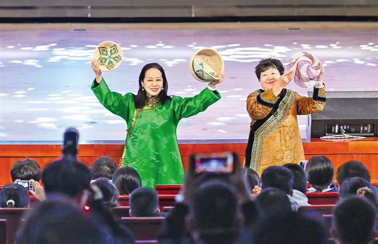 對接會設(shè)在北京一零一中學(xué)圓明園校區(qū),現(xiàn)場,內(nèi)蒙古特色非遺、歌舞表演異彩紛呈,鮮活展現(xiàn)絢爛多彩的北疆文化。北京交通大學(xué)現(xiàn)代旅游研究學(xué)院院長張輝作“研學(xué)旅游高質(zhì)量發(fā)展”主旨演講。自治區(qū)文旅廳發(fā)布了2025年研學(xué)旅游新品,重磅推出深度融合內(nèi)蒙古的自然地理、歷史文化、科學(xué)技術(shù)與民族風(fēng)情的4條主線、20條支線的研學(xué)旅行路線,還系統(tǒng)推出一批具有地域特色與文化內(nèi)涵的精品主題研學(xué)旅游產(chǎn)品,全方位展示了內(nèi)蒙古研學(xué)旅游的獨特魅力和發(fā)展?jié)摿?。?nèi)蒙古藝術(shù)劇院烏蘭恰特藝術(shù)培訓(xùn)中心推介了北疆文化藝術(shù)研學(xué)產(chǎn)品;中國鐵路呼和浩特局發(fā)布京蒙研學(xué)旅游專列計劃,并進行京蒙兩地研學(xué)公司客源互通簽約儀式;中國旅游協(xié)會研學(xué)旅行分會與內(nèi)蒙古自治區(qū)旅游協(xié)會進行合作簽約?;顒舆€設(shè)置“少年那達慕”互動體驗,吸引不少青少年現(xiàn)場打卡體驗北疆文化。“內(nèi)蒙古是一個自然與人文交織的遼闊課堂,期待走進內(nèi)蒙古,用腳步丈量、用心靈感受內(nèi)蒙古?!北本┙逃龑W(xué)院豐臺分院附屬學(xué)校學(xué)生高晟恩說。
