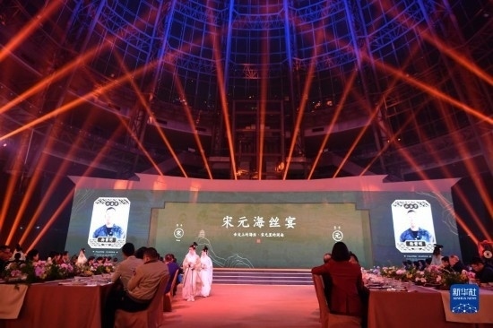 當(dāng)日,福建泉州石獅市舉辦“閩菜地標(biāo)美食城市”授牌暨“宋元海絲宴”推介儀式。“宋元海絲宴”以南宋福建泉州石獅籍美食家林洪著作《山家清供》為還原藍(lán)本,兼收閩南名菜,集山珍、海味于一席,將菜品、宴席與宋元器皿、場(chǎng)景、樂(lè)曲、詩(shī)詞等融合,展現(xiàn)宋元時(shí)期世界海洋商貿(mào)中心獨(dú)特的美食文化。新華社記者 魏培全 攝