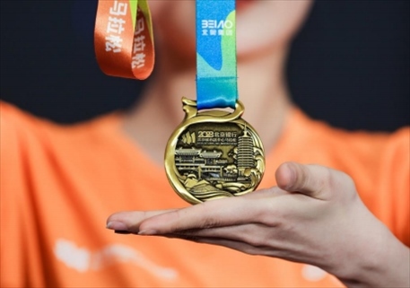 在新聞發(fā)布會(huì)上,賽事組委會(huì)還發(fā)布了本屆賽事的獎(jiǎng)牌和服裝。獎(jiǎng)牌名為“運(yùn)河逐夢(mèng)”,意為歡迎全國各地的跑友來北京城市副中心運(yùn)河畔發(fā)展創(chuàng)業(yè)、追逐夢(mèng)想。賽事服裝主色調(diào)橙色彰顯屬于馬拉松運(yùn)動(dòng)的青春活力,寓有馬到“橙”功之意。