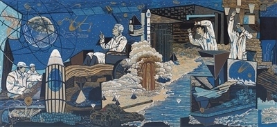 “大國(guó)重器”亮點(diǎn)紛呈,脫貧攻堅(jiān)成就舉世矚目,這些時(shí)代新象都在展覽中得到體現(xiàn)。例如,張輝君油畫《蛟龍入?!?、沙永匯版畫《北斗》等作品,折射出我國(guó)科技自主創(chuàng)新能力不斷提升。孔紫中國(guó)畫《戈壁灘》和劉云中國(guó)畫《美麗鄉(xiāng)村》,分別借助植樹造林的人物群像塑造、新農(nóng)村景觀的宏闊描繪,展現(xiàn)了彪炳史冊(cè)的人間奇跡。
