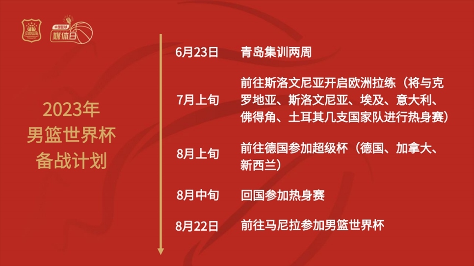 談到中國男籃備戰(zhàn)世界杯的具體規(guī)劃時,徐濟成表示:“球隊將于6月23日在青島開啟為期兩周的集訓(xùn);7月上旬前往斯洛文尼亞開啟歐洲拉練,將與克羅地亞、斯洛文尼亞、埃及、意大利、佛得角、土耳其幾支國家隊進行熱身賽;8月上旬前往德國參加超級杯,對手包括德國、加拿大、新西蘭;8月中旬回國參加1-2場熱身賽后,將前往馬尼拉參加男籃世界杯?!?/p>