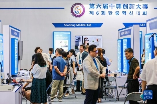 7月28日,參會(huì)者在博覽會(huì)上觀看中韓創(chuàng)新大賽成果展示。