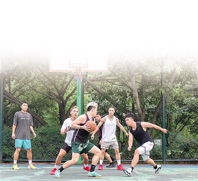市民在成都杉板橋籃球場內(nèi)打球。本報記者 伊 霄攝