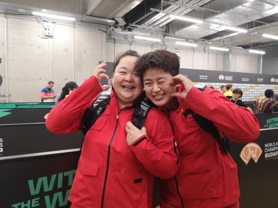 賽場內外,年齡相差15歲的兩人臉上總是掛著同款笑容,也總是形影不離。趙杰說她總是粘著崢姐,而王崢則說出門在外總是趙杰照顧她更多。