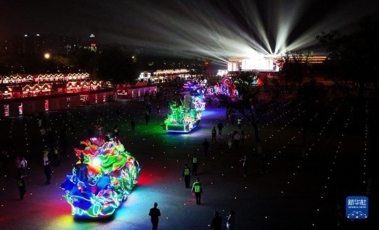 唐大明宮是盛唐時期享有盛名的宮殿群,有著“千宮之宮”的美譽(yù)。國慶期間,古風(fēng)演藝、華服大秀、曲藝匯演、彩車巡游等一系列活動在大明宮國家遺址公園持續(xù)上演。夜幕之下,盛唐文化與現(xiàn)代時尚在此相映生輝,吸引市民游客前來參觀打卡。新華社記者 劉瀟 攝