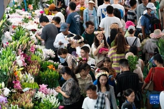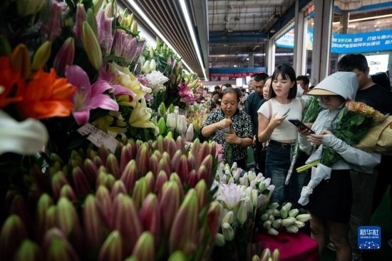中秋國慶長(zhǎng)假期間,不少市民游客前往云南省昆明市的斗南花卉市場(chǎng)選購鮮花。