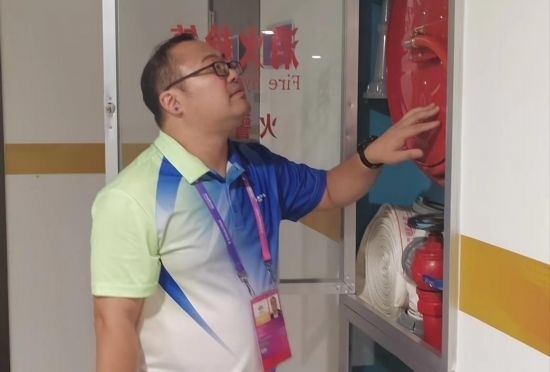 王偉亮駐點在杭州黃龍體育中心體育場,根據足球賽開賽時間的特點,他一般是下午17:30以前到崗,先是對黃龍體育中心體育場開展賽前風險查勘,沿著場館外圍觀眾通行通道對消防設施、排水設施、通風設施、觀眾席出入口、無障礙通行設施以及懸空固定設施逐一進行檢查,進行風險排除。在賽中和賽后,他也要持續(xù)巡場,對因觀眾進場導致發(fā)生的新的風險情況予以反饋和處置,真正結束工作已經要到凌晨0:30左右。如今亞運已經開幕,多場比賽均達到場館的最大負荷,王偉亮長期處于精神高度集中、體力臨近上限的狀態(tài)。但是他沒有絲毫松懈,遇到突發(fā)情況時,依舊會第一個沖上去提供幫助。