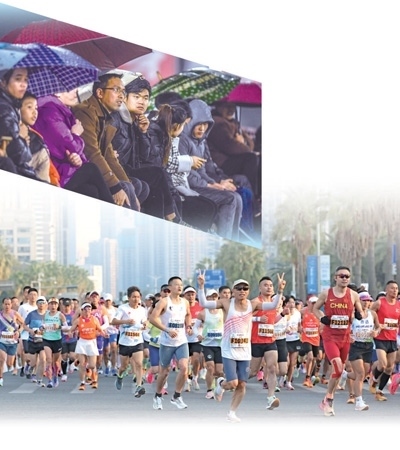 上圖:1月6日,2024年“村超”新賽季在貴州省榕江縣開賽。圖為觀眾在場(chǎng)邊觀賽。新華社記者 陶 亮攝 下圖:1月7日,2024廈門馬拉松賽舉行,3萬(wàn)名選手參加。圖為選手在比賽中。陳 博攝(影像中國(guó))