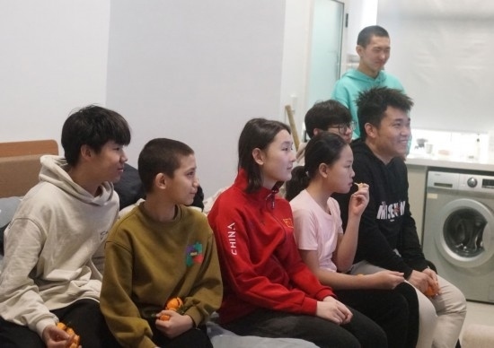 “這是第一次離開爸爸媽媽、離開家鄉(xiāng),和隊友、教練一起過新年。很興奮,但也很想爸爸媽媽。昨天和大家一起吃了豐盛的年夜飯,還和爸爸媽媽視頻,分享了我的新年?!迸取ぐ⒌亓φf。