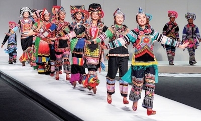 云南省楚雄彝族特色服飾在北京秋季國際時裝周閃亮登場。圖為永仁縣委宣傳部提供