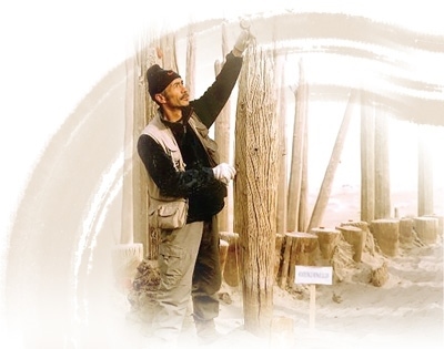 伊弟利斯在考古現(xiàn)場對一個胡楊立柱進行測量。