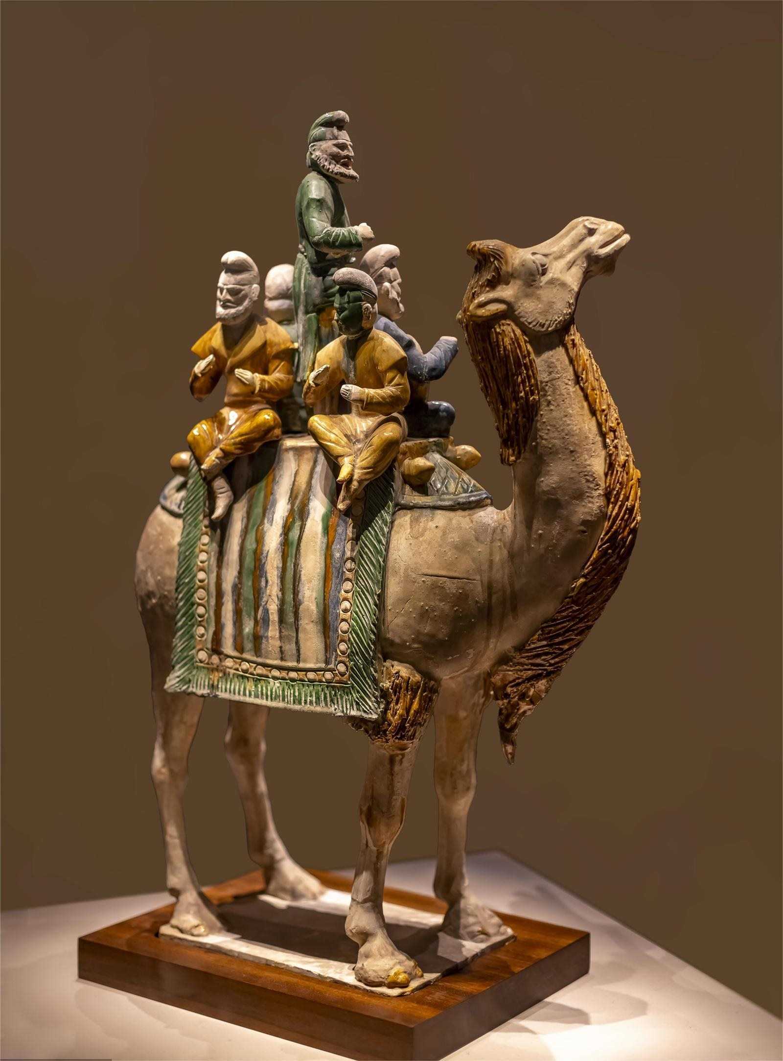 中國國家博物館的唐三彩釉陶載樂駱駝巧妙地夸張了人與駝的比例,造型優(yōu)美生動,釉色鮮明潤澤,代表了唐三彩的最高水平,更重要的是,它見證了絲綢之路上的文明互鑒。