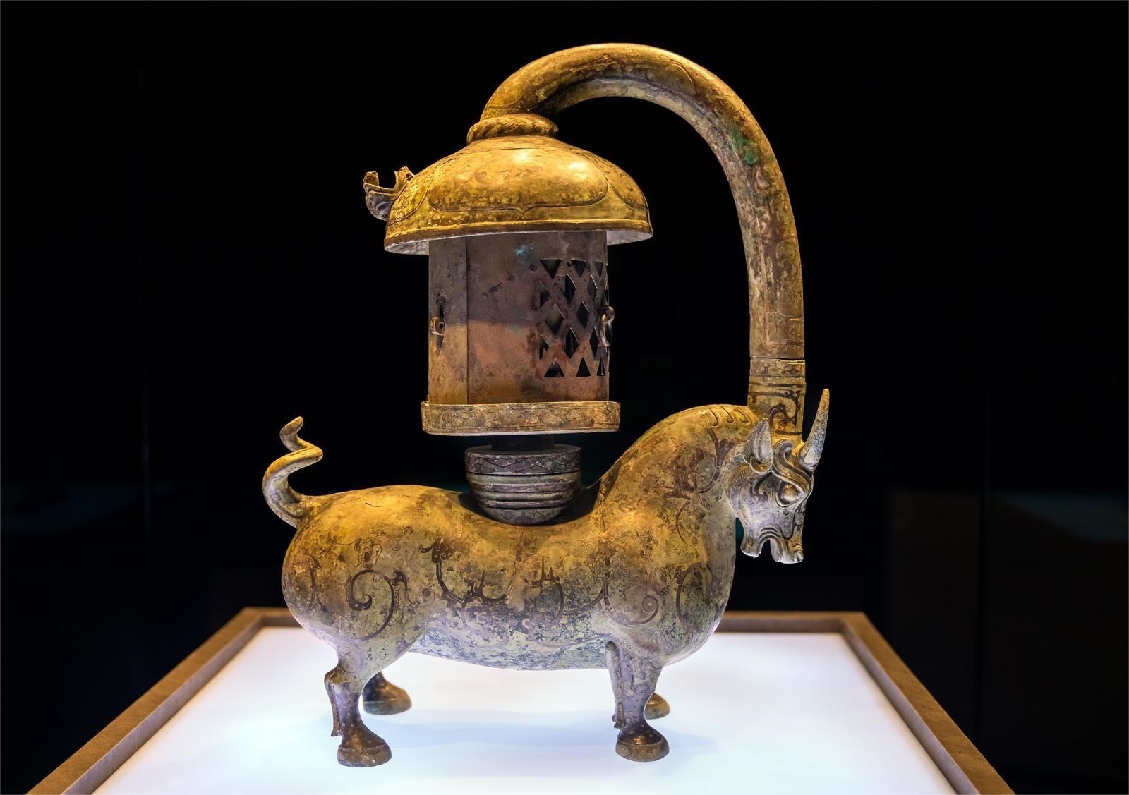 2000年前的錯金銀銅牛燈,環(huán)保,無煙。