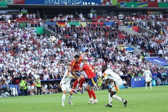 下半場(chǎng)開場(chǎng)德國隊(duì)就換上維爾茨和安德里希。第51分鐘,西班牙隊(duì)亞馬爾右路帶球進(jìn)入禁區(qū)后橫傳中路,拍馬趕到的奧爾莫推射破門,為本隊(duì)先拔頭籌。此后德國隊(duì)換上中鋒菲爾克魯格,與哈弗茨形成雙前鋒,逐漸占據(jù)場(chǎng)面主動(dòng)。第76分鐘,菲爾克魯格禁區(qū)內(nèi)搶點(diǎn)射門擊中立柱。