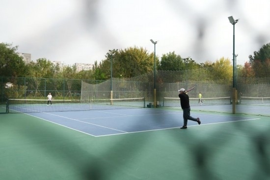 10月16日,在北京回龍觀體育文化公園的網(wǎng)球場,幾位愛好者在打網(wǎng)球。新華社記者 鞠煥宗 攝