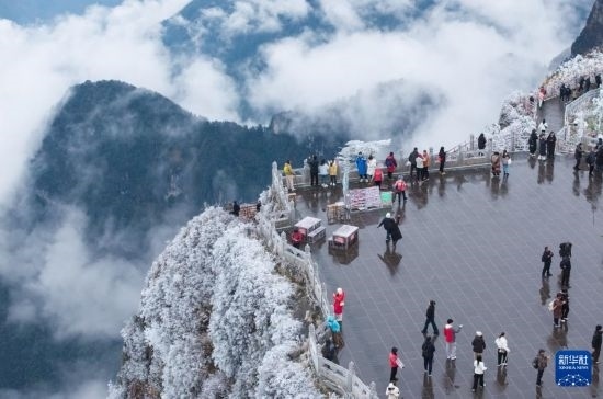 近日,峨眉山迎來今冬第一雪,奇峰、林海、云霧與冰雪繪就了一幅幅銀裝素裹的美麗畫卷。