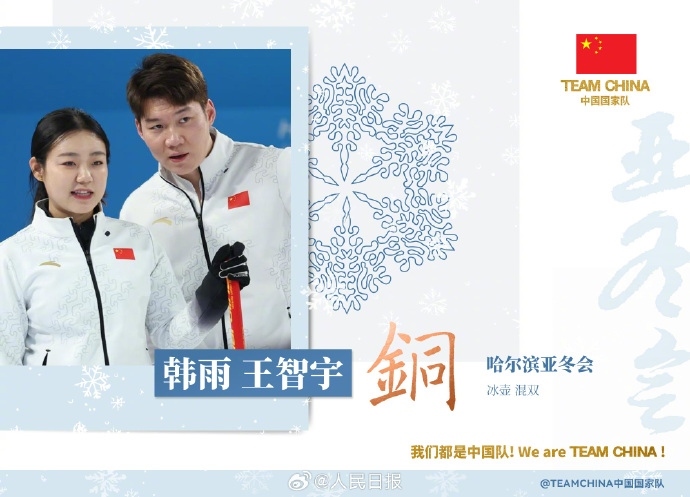 中國(guó)隊(duì)首枚獎(jiǎng)牌!韓雨/王智宇獲得冰壺混雙銅牌