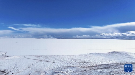 這是2月22日拍攝的雪后的鄂陵湖一角(無(wú)人機(jī)照片)。