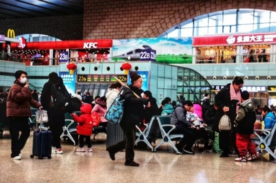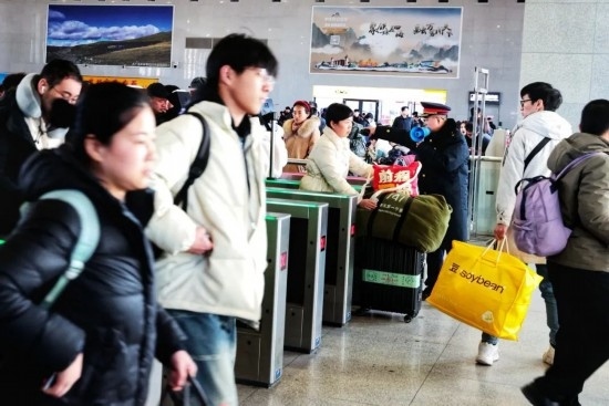 2月5日迎來返程高峰,邯鄲站內(nèi)的旅客依次檢票進(jìn)站。