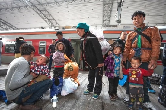 2015年,一對(duì)老兩口乘坐高鐵到北京與兒子過團(tuán)圓年,實(shí)現(xiàn)反向春運(yùn)。