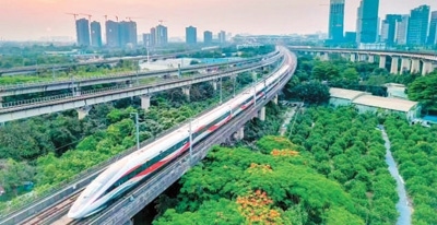 復(fù)興號(hào)列車駛出廣州南站。